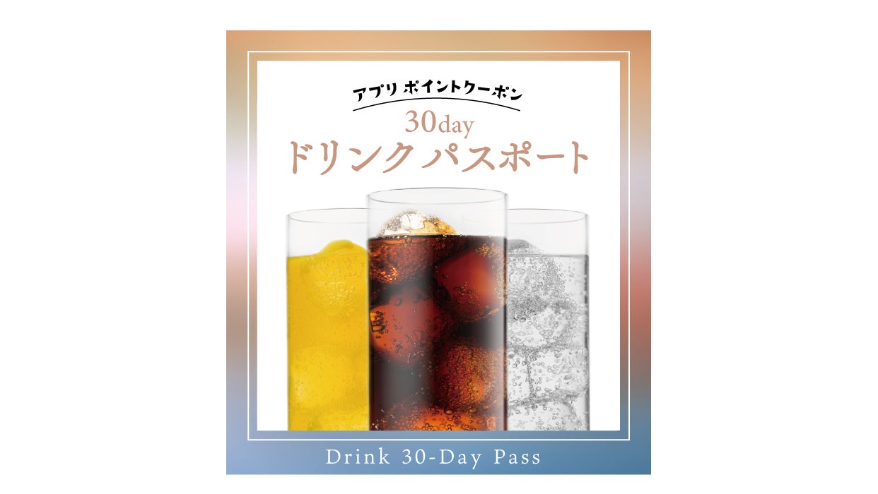 ドリンクバーを期間中無料でお楽しみいただける「ドリンク30daysパスポート」クーポンが28ptで交換できます。期間中何度でもご利用いただけます。